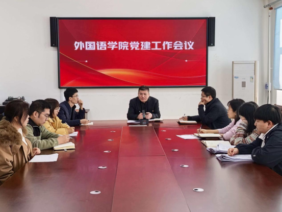 3月4日,外国语学院于弘道楼306会议室召开党建工作布置会议,此次会议由外国语学院党总支书记郑德志主持,外国语学院党总支委员、各党支部书记参会。