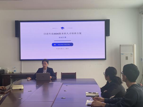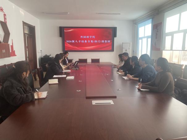 3 月 11 日,外国语学院组织开展 2026 版本科人才培养方案(修订)预答辩会,学院党总支书记郑德志、院长刘静、副院长贾振峰出席会议,英语、英语(师范)、日语、俄语四个专业负责人依次作专业汇报。