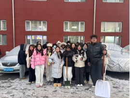 降雪过后,校园道路积雪结冰给师生出行带来不便。外国语学院学生干部迅速集结,主动扛起铲雪除冰重任。大家手持铁锹、扫帚等工具,分工协作、干劲十足,对主干道、教学楼出入口等关键区域进行全面清理,以最快速度消除出行隐患,用行动筑牢校园安全防线。