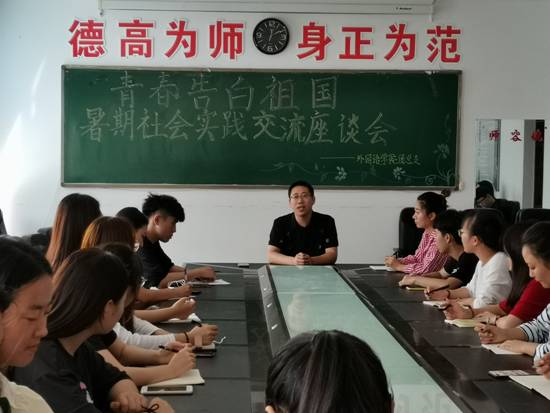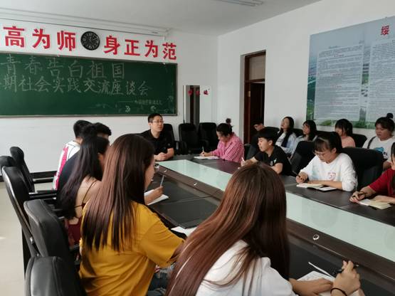 9月6日中午12:00,我院于外语楼306开展了“青春告白祖国”——暑期社会实践交流座谈会。我院团总支书记张扬,办公室主任盛振桐、学生会副主席李宏涛、17、18级各班班长、团支书以及社会实践优秀学生代表参加了本次座谈会。