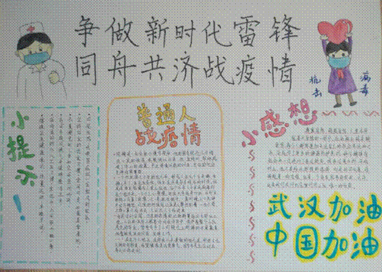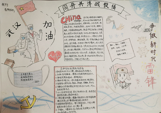 为弘扬和培育民族精神,倡导团结友爱、文明礼貌、勤俭节约、无私奉献的新风尚和“奉献、友爱、互助、进步”的志愿精神,我院团总支举办了“争做新时代雷锋同舟共济战疫情”手抄报比赛,为抗击疫情助力。