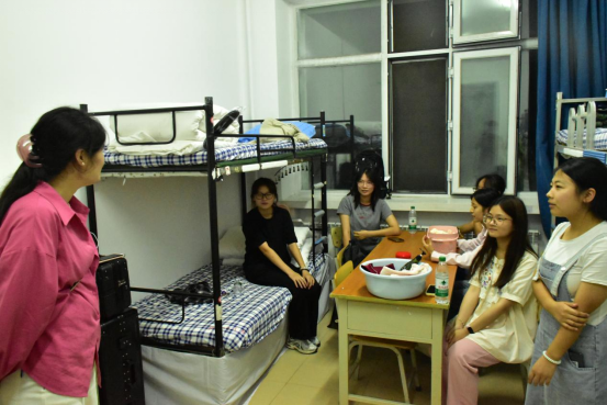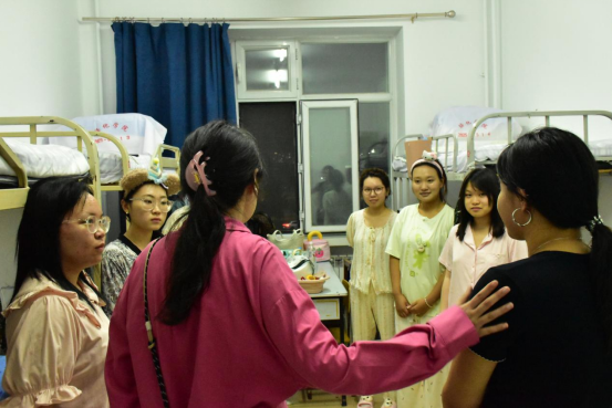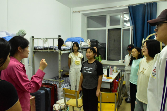 同时,为进一步了解新生的适应情况与实际需求,活动结束后当天傍晚,尚岩与2025级新生代班一同走进学生宿舍,与新生们进行面对面交流。在走访过程中,她们与新生面对面交流,倾听需求、解答疑问,让新生切实感受到学院关怀。
