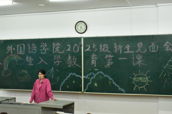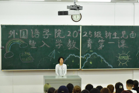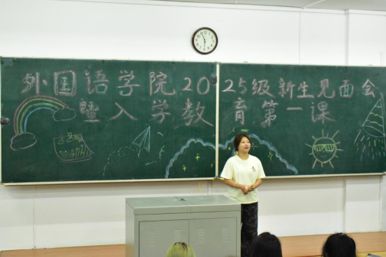8月31日,外国语学院于厚德楼B124教室开展2025级新生见面会暨入学教育第一课。2025级辅导员尚岩主讲,2025级全体新生参加活动。