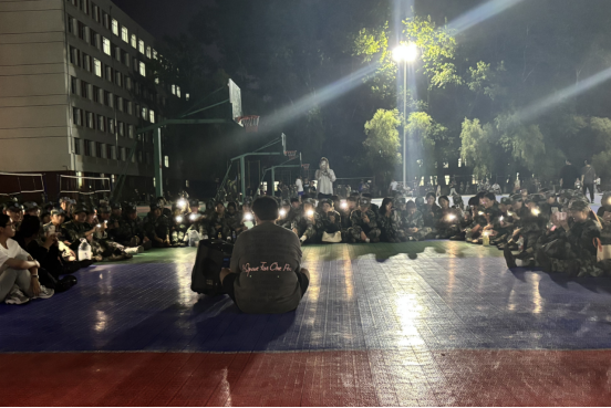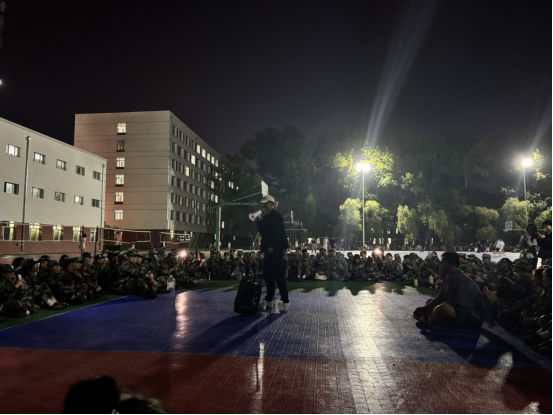夜幕降临,晚训时光洋溢着别样活力与温情。同学们自发围圈成临时“舞台”,无华丽布景与专业设备,却挡不住展现热情。唱歌、跳舞……大家轮番登场,各展所长。点点闪光灯亮起,热情被彻底点燃,羞涩的同学也放下拘谨,摇臂随旋律起伏,手中光亮汇成温暖光海,映着青春笑脸。