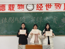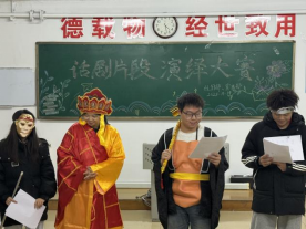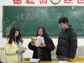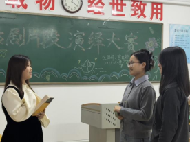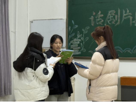 11月19日,外国语学院于弘道楼315教室开展以“声形绘经典,舞台绽芳华”为主题的话剧片段演绎比赛活动。此次活动由外国语学院社团部主办,宣传部协办,部分社团社长担任评委,2025级部分同学参加。