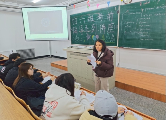 11月23日,外国语学院于厚德楼B326教室开展四六级考前辅导系列第一期讲座。此次活动由学习部主办,特邀请外国语学院唐利君老师进行主讲,学习部以及2023级、2024级、2025级部分学生参加。
