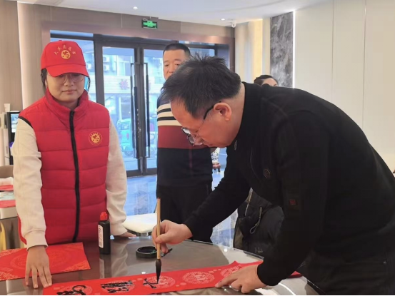 在文化文艺活动中,李婉宁深度参与县春节晚会及各类文艺汇演的前期策划、流程对接与现场执行工作,协助整理非遗展示资料,向市民讲述地方文化传承故事。晚会前夕,她加入“写春联送福”活动,现场挥毫书写百余副春联与福字,将笔墨书香与新春祝福送至群众手中,让传统文化浸润人心。