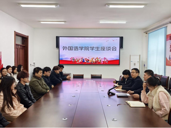 3月18日,外国语学院于弘道楼306会议室召开学生座谈会。此次会议由外国语学院党总支书记郑德志主持,党总支副书记张扬、2023级辅导员李阳溪、2025级辅导员尚岩出席,各年级部分学生代表参与座谈交流。