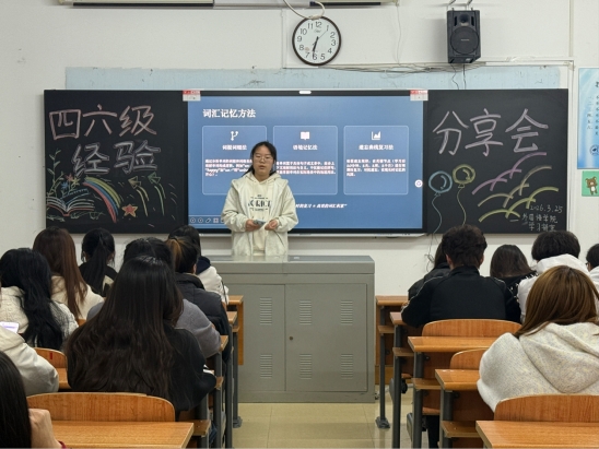3月25日,外国语学院于弘道楼310教室开展四六级经验分享会。此次活动由2024级英语(师范类)一班谷雪莲主讲,2025级部分同学参加。